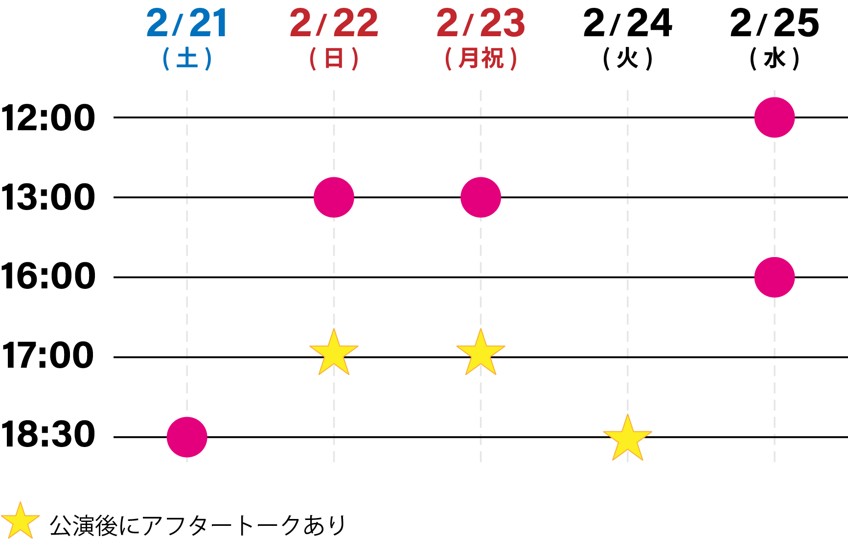 別日で2公演ご覧になる場合はそれぞれ別々にお買い求めください。 - ・お見送りは昼公演終演後に行います。